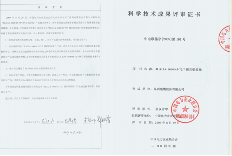 7、2008年8月首批研制成功國家電網(wǎng)錦屏一蘇南±800kv特高壓直流輸電工程用900mm2鋼芯鋁絞線(xiàn)。